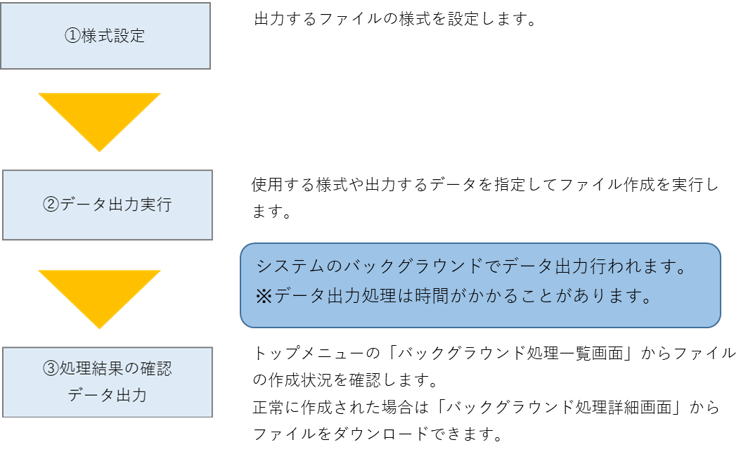 データエクスポートの流れについては以下のをクリックしてください。