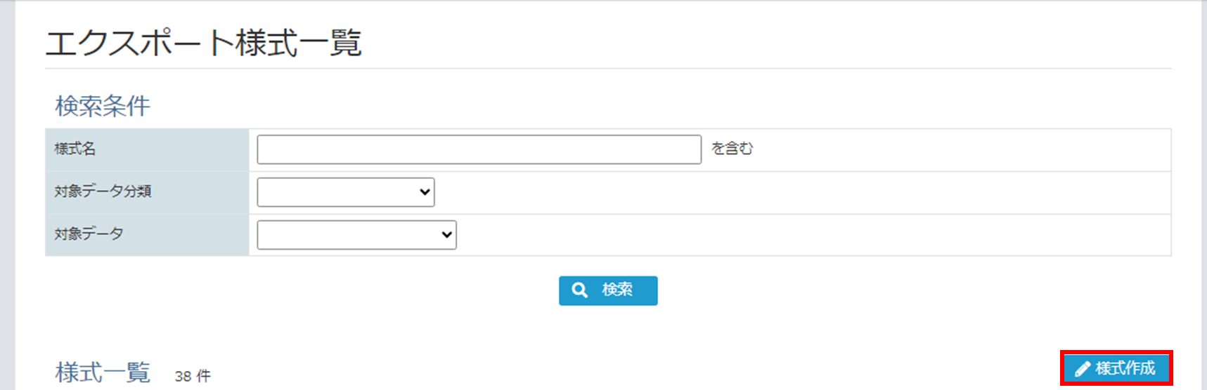 [エクスポート様式一覧画面]で、[様式作成ボタン]をクリックします。
