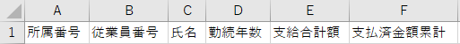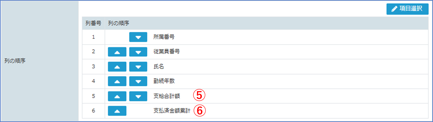 [エクスポート様式設定画面]の[勤続年数]の下に[支給合計額]、[支払済金額累計]の順番に項目が反映します。