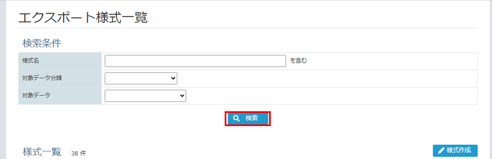 [エクスポート様式一覧画面]で、データ出力したい様式を検索してください。