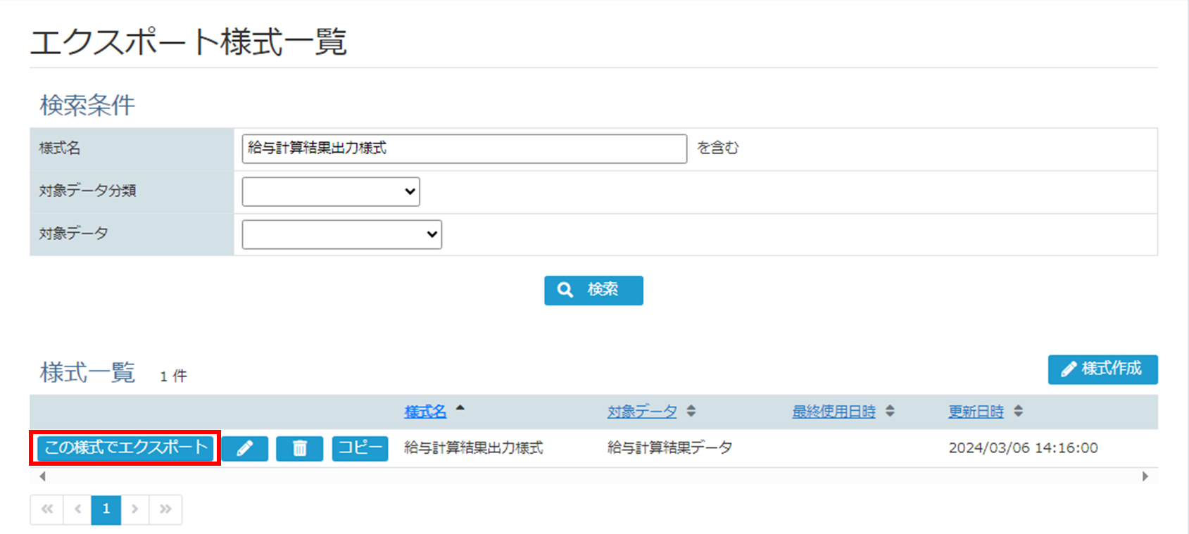 エクスポート様式一覧画面が表示されます。
