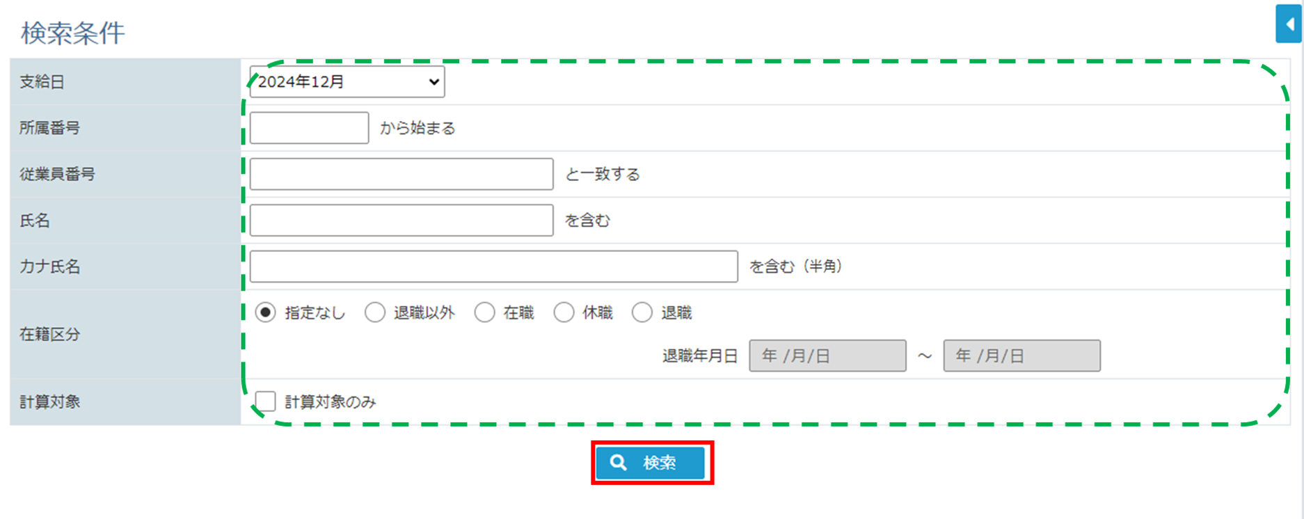 検索条件を指定し、[検索ボタン]をクリックします。
