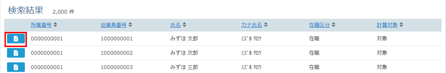 検索結果の中から対象の従業員を探し、左端の[参照ボタン]をクリックします。
